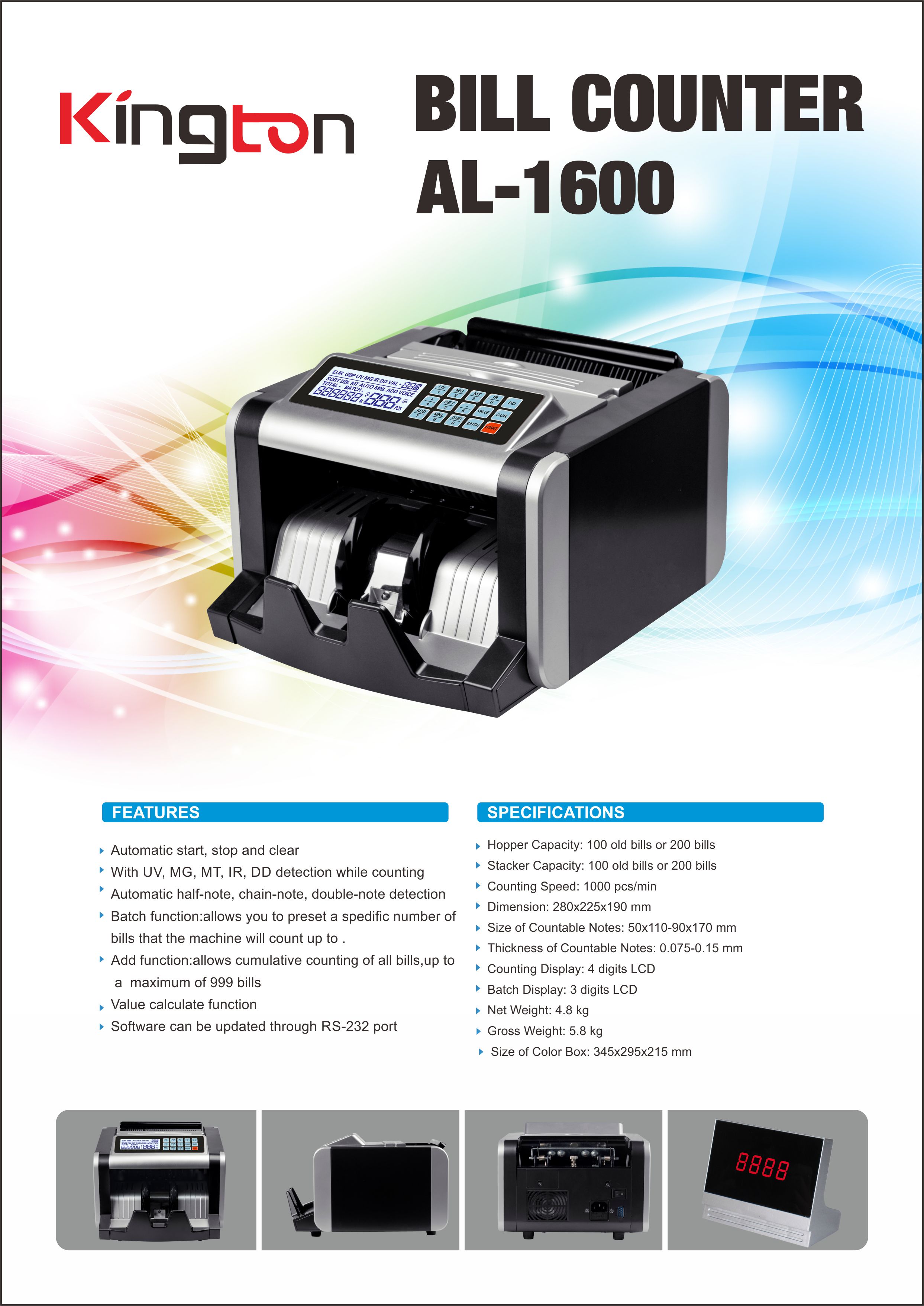 Kington Al 1600 Money Counting Machine Buy Online At Best Prices In Bangladesh Daraz Com Bd